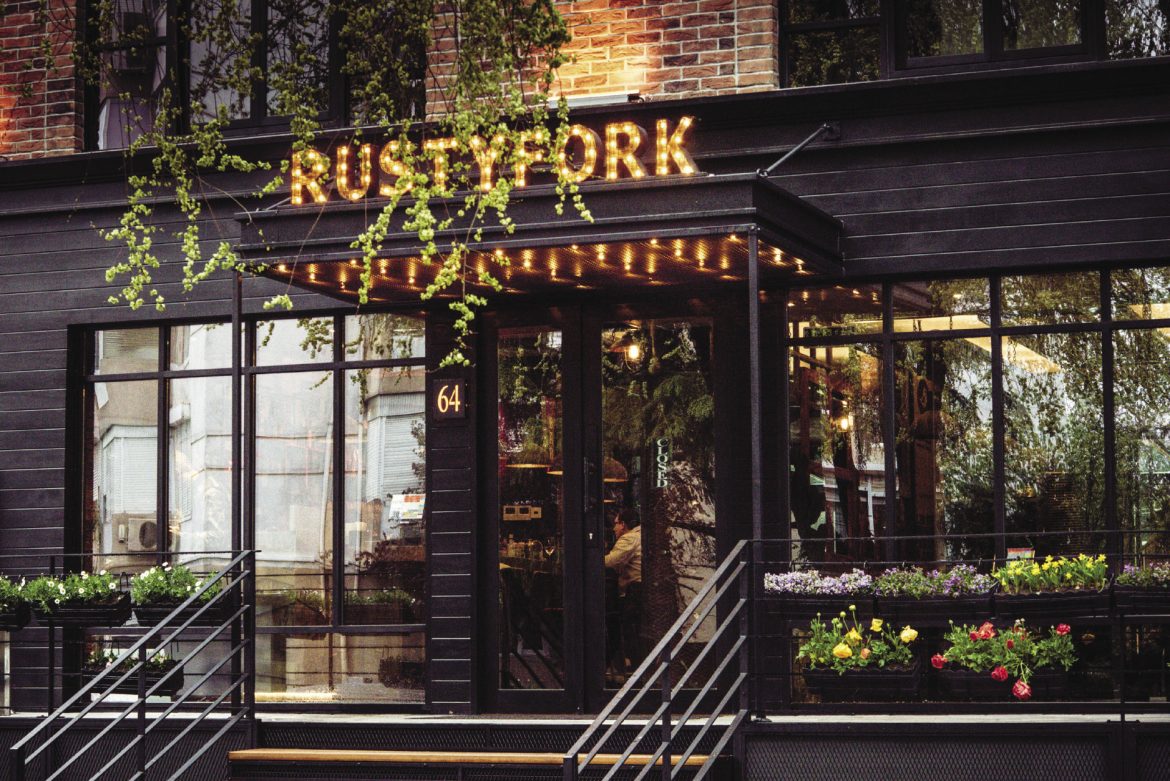 Rustik mimarinin en temel öğeleri olan ahşap, taş, tuğla gibi detayların yoğun kullanımı Rustyfork’un dekorasyonunda öne çıkarken, mekâna dinamizm ve güçlü bir hava katan metal dokunuşlar da kafes detayları, aydınlatmalar, dolaplar gibi materyallerde kendini gösteriyor. Mekâna özel çizimler ise sanatçı Birim Erol tarafından tasarlandı. Ahşap üzerine çizilmiş, baskı efektli boğa resmi, adeta yerinden çıkıp gitarıyla şarkılar söyleyecek gibi duran, tuğla duvar üstü, yağlı boya efektli B.B. King’in resmi kadar Rustyfork’un panellerini süsleyen cigarbox gitarlar da mekânın çarpıcı detayları olarak öne çıkıyor. İki katlı mekânın üst bölümünde özel günler için ayrı bir bölüm, arka bölümünde ise büyük bir bahçe bulunuyor.