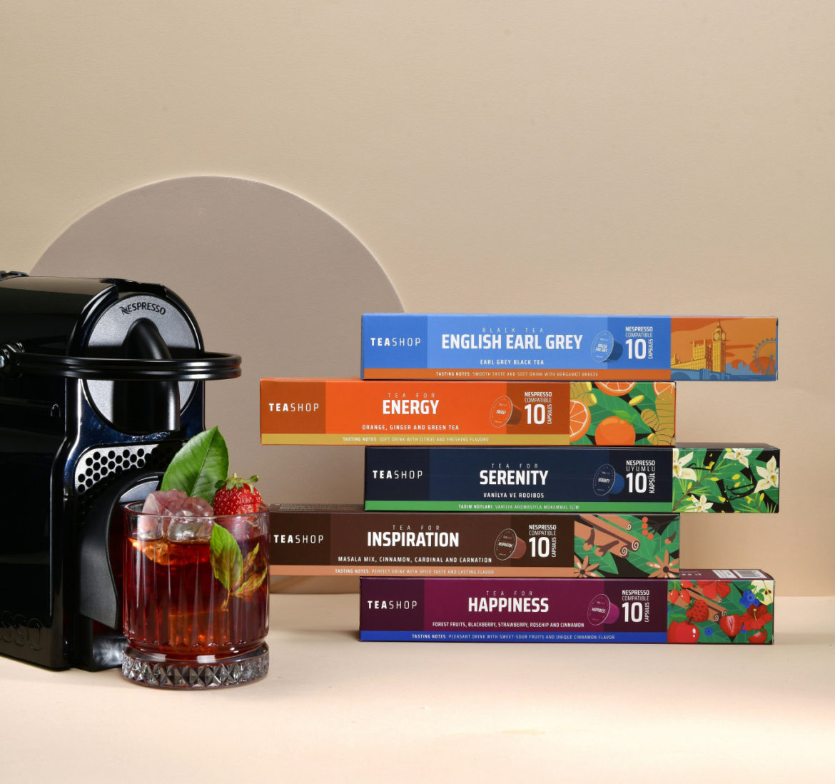 Sadece 30 saniyede mükemmel aroma ve tattaki doğal çaylar sıcak ya da soğuk olarak hazır! Kapsül çayın demleme çaydan daha iyi olduğunu söyleyen Tea Shop Kurucusu Veysel Berk, “Kapsül çay ile ilk aşamada hedefimiz pazarın on binde birine ulaşmak. Bu da yıllık yaklaşık 10 milyon kapsül çay satacağımız anlamına geliyor. Pazar o kadar büyük ki on binde biri bile insanı heyecanlandırıyor” diyor.