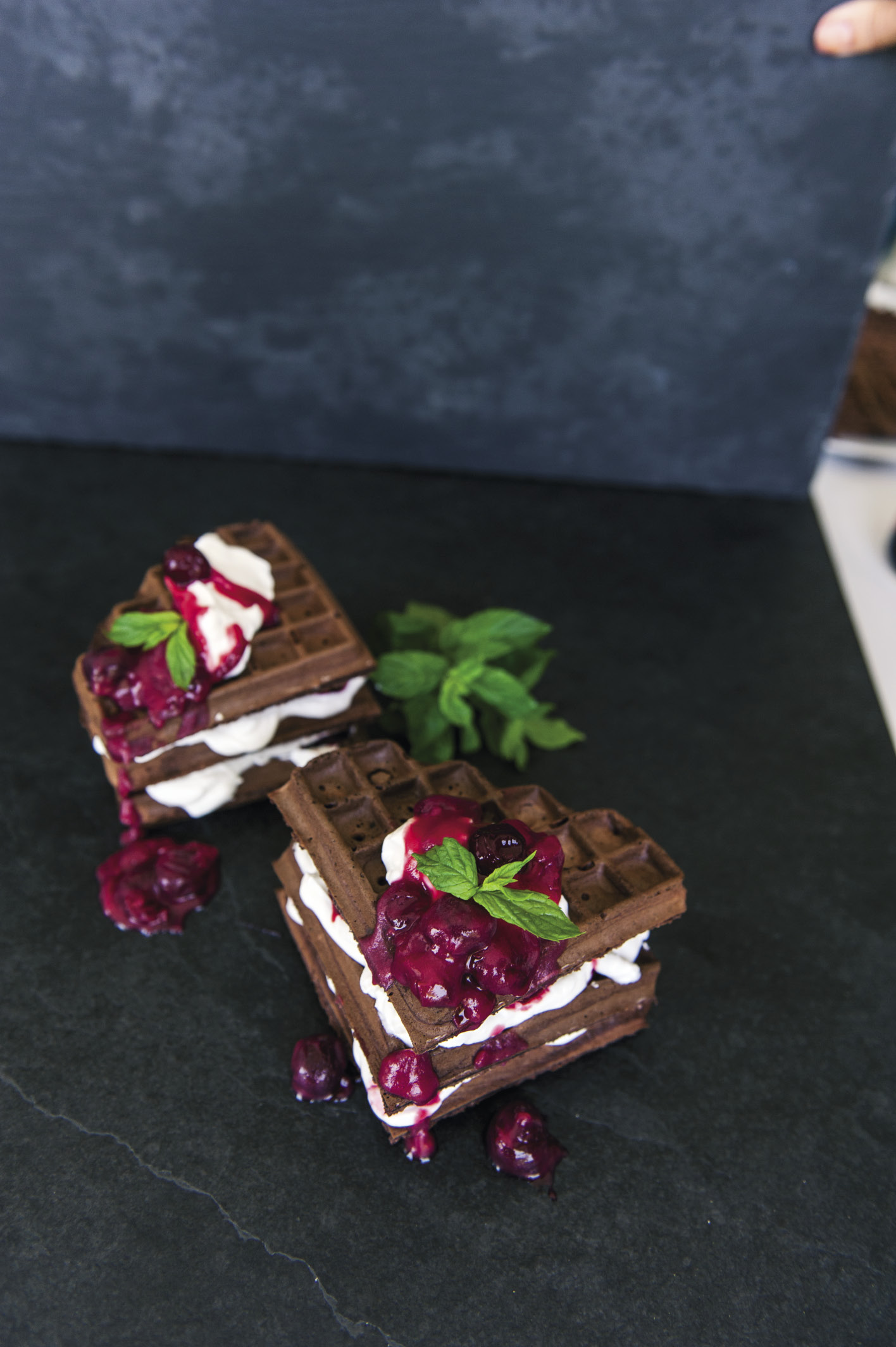 Yumurtaları çırpın ve ezilmiş muz, süt ve kuru malzemeleri karıştırıp kenara alın. Makineyi ısıtıp yağlayın. Kepçeyi makinenin tam ortasına dökün. Kapağını kapatın ve 5-7 dakika sonra alıp aralarına peynir yayın. Üzerine vişne reçelini döküp servise hazırlayın.