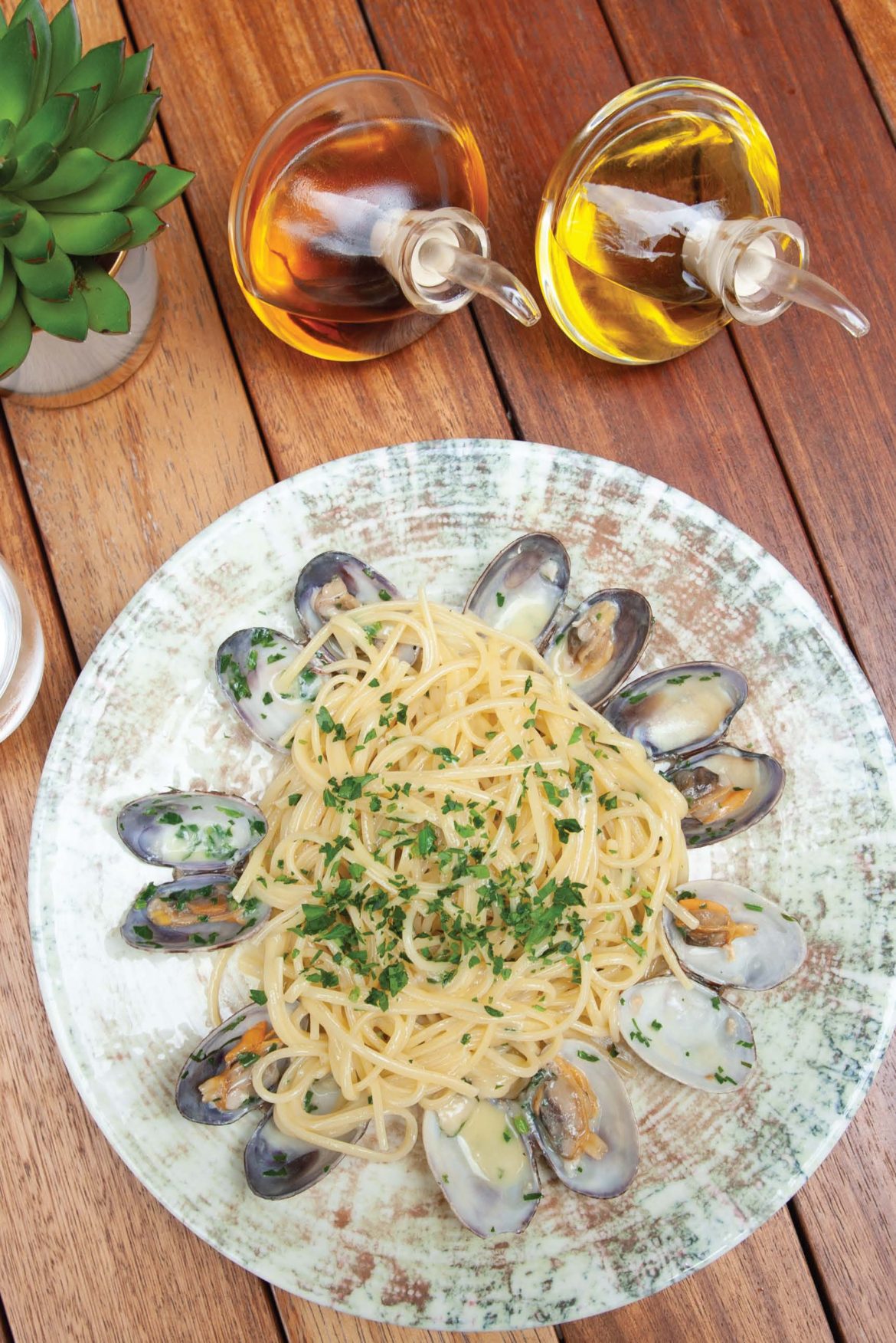 Linguine kaynar suda 6 dakika haşlanır. Paslanmaz çelik tavada sarımsak ve vongole zeytinyğında sotelenir. Beyaz şarap ilave ederek 1 dakika tavanın kapağını kapatarak vongoleler pişirilir. Kapağı kaldırdığımızda eğer vongoleler açılmışsa pişmiş demektir. Maydanoz, taze fesleğen ve linguine ilave ederek sotelenir. Tuz ve tane karabiber ile tatlandırılarak servis edilir. Servis ederken üzerine maydonoz serpilir.