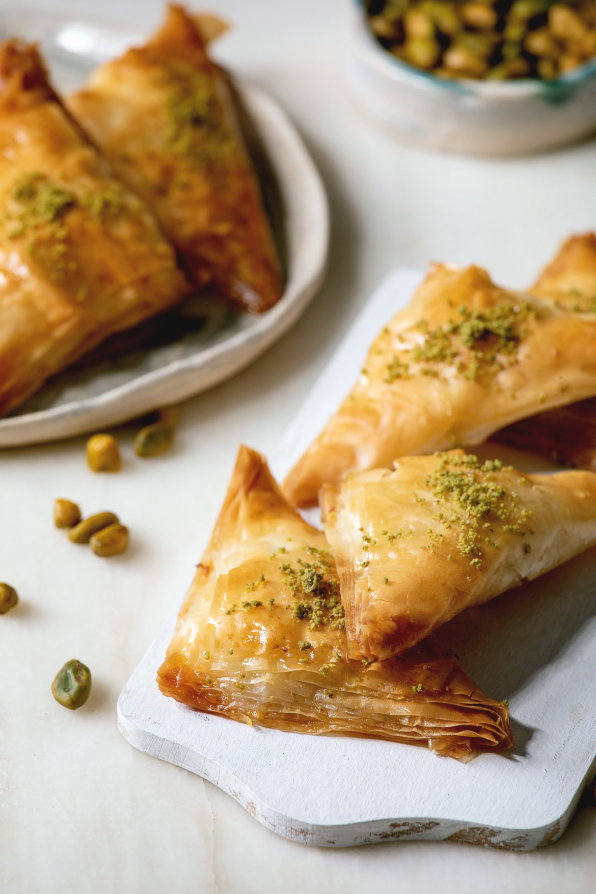 3- Açılmaması için ucunu ıslatıp yapıştırın. Bu işlemi yufkalar bitene kadar yapın. Hazırladığınız börekleri bol yağda kızartın. Fazla yağından kurtulmak için kâğıt havlunun üstünde bekletin. Üzerine bal ve Antep fıstığı dökerek servis edebilirsiniz. Afiyet olsun.