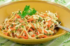 Göbek salata, maydanoz ve yeşil soğanı yıkayıp ince ince doğrayın. Havuçların kabuklarını soyup rendeleyin. Geniş bir kaseye göbek, havuç, yeşil soğan ve maydanozu alıp harmanlayın. Ayrı bir kasede zeytinyağı, limon suyu ve tuzu karıştırıp üzerine gezdirin. Maydanoz yapraklarıyla süsleyerek servis yapın.