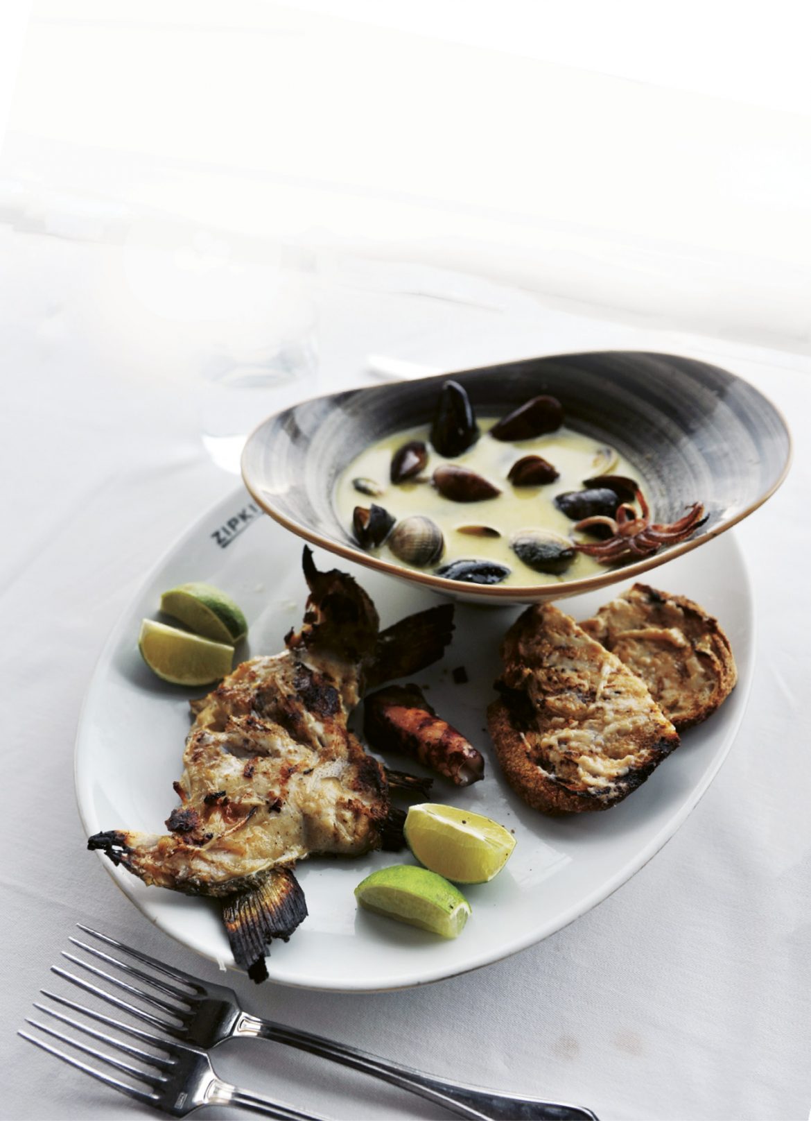 O tam bir deniz ve balık tutkunu. En küçüğünden en büyüğüne pek çok balığı avlamış, ayıklamış, pişirmiş bir ‘balıkçı’. Yıllardır kimi zaman sahibi, kimi zaman işletmecisi olduğu pek çok farklı mekândan sonra son durağının bir balık restoranı olmasına bu yüzden şaşırmamak gerek. Erhan Görücüoğlu’nun biri Alaçatı’da, diğeri İstanbul Arnavutköy’de olmak üzere iki tane Zıpkın’ı var. Biz Arnavutköy’e gittik ve mutfağa her zaman girmeyen şeften, menüde olmayan ve sadece istek üzerine yapılan çok özel bir tarif aldık.