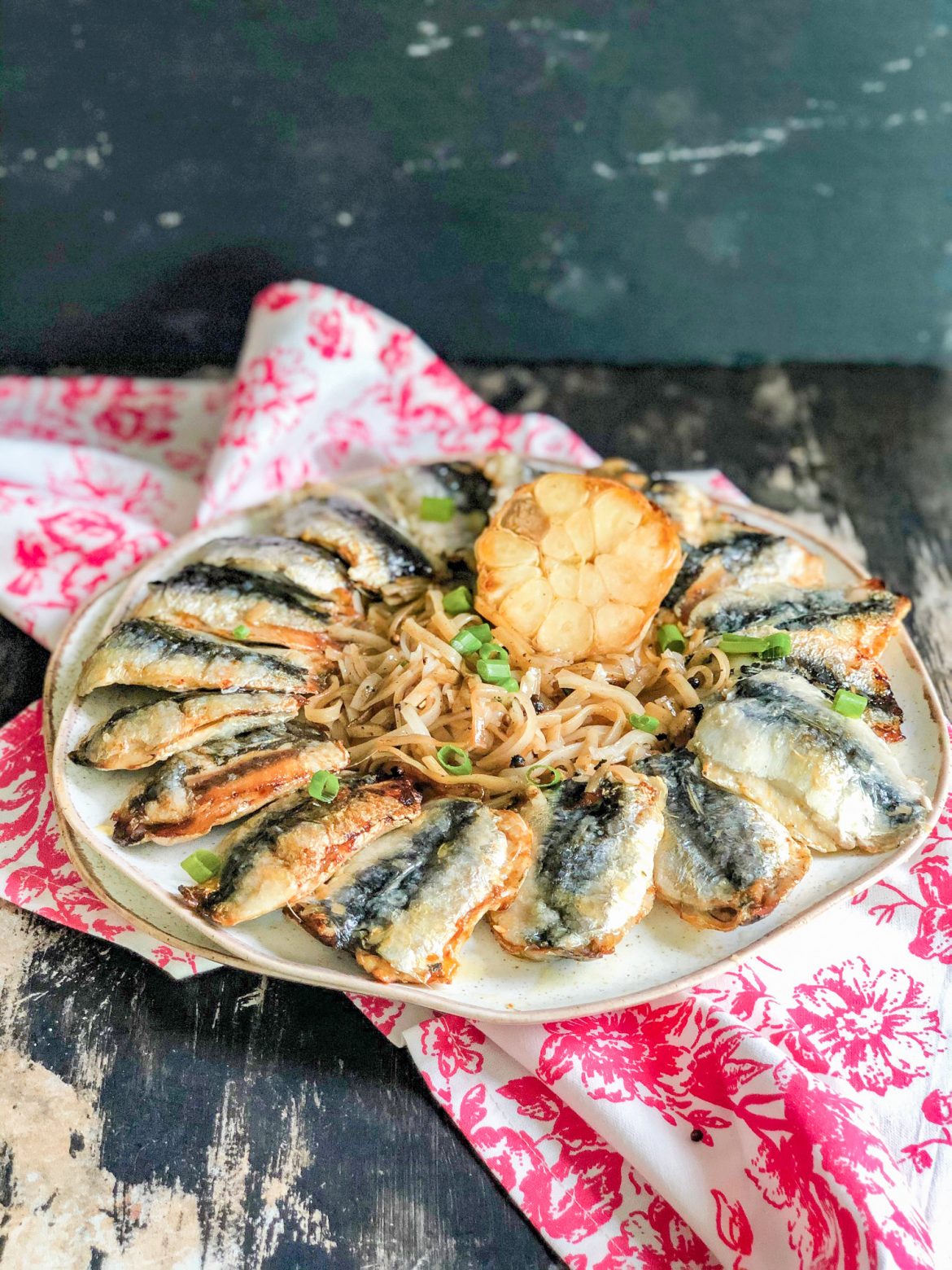 Balıkların ortasına yarım baş sarımsağı koyup onu da pişirin. Servis zamanı geldiğinde taban kenarına hamsileri, ortasına da köy eriştesini yerleştirip masaya getirebilirsiniz.