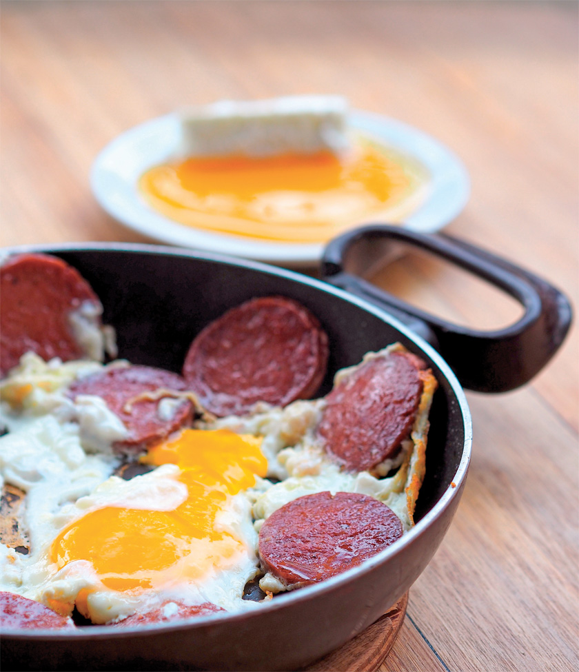 Bakışlarımızı Türkiye’ye çevirdiğimizde ise son yıllarda ülkemizde baş döndürücü bir süratle yükselen ‘serpme kahvaltı’ akımını görüyoruz. Bu akımın en temel özelliğinin, çeşidin bol olması ve tabakların adeta ‘mehter marşı’ çalınarak dizilmesi olduğunu söylesek yanılmış olmayız herhalde. Peynirler, zeytinler, yumurtalar, menemenler, pişiler, gözlemeler, bazlamalar, simitler, reçel çeşitleri, çay, kahve, portakal suyu arz-ı endam eyliyor sofralarımızda… Fakat kim ne derse desin, düzenlenen sofralar ne denli coşkulu olursa olsun, Türk insanı için iyi bir kahvaltının özünde iki önemli madde yerini korumaya devam ediyor: Sucuk ve kaymak. Yazımızın konusu da bu iki lezzeti ile meşhur olan Afyon yani Afyonkarahisar kentinin kahvaltı sofralarımıza katkısı.