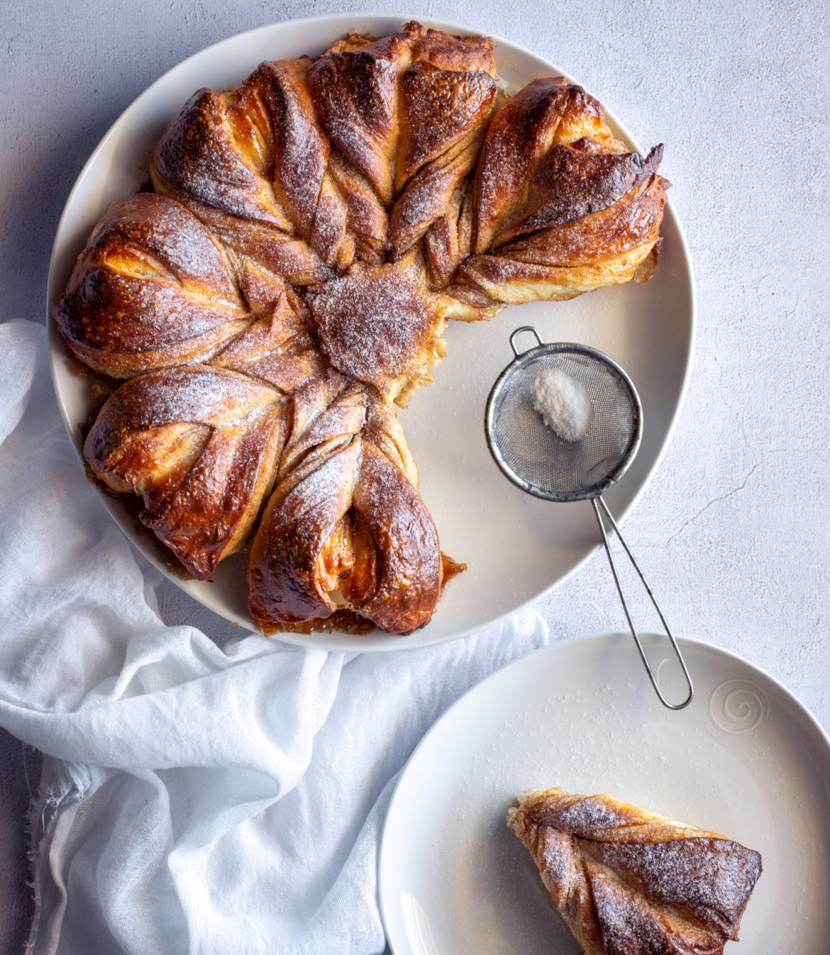 Şimdiye kadar yapacağınız en şık ekmek olan bu Yıldız Ekmeği göz korkutucu görünebilir ancak tarifi ve şekil verme tekniği aslında oldukça basittir. Güzel ve karmaşık bir tasarıma sahip olan yıldız ekmek, üzerine pudra şekeri serpilerek servis edilir ve varlığıyla süslediği her sofranın baş tacıdır!